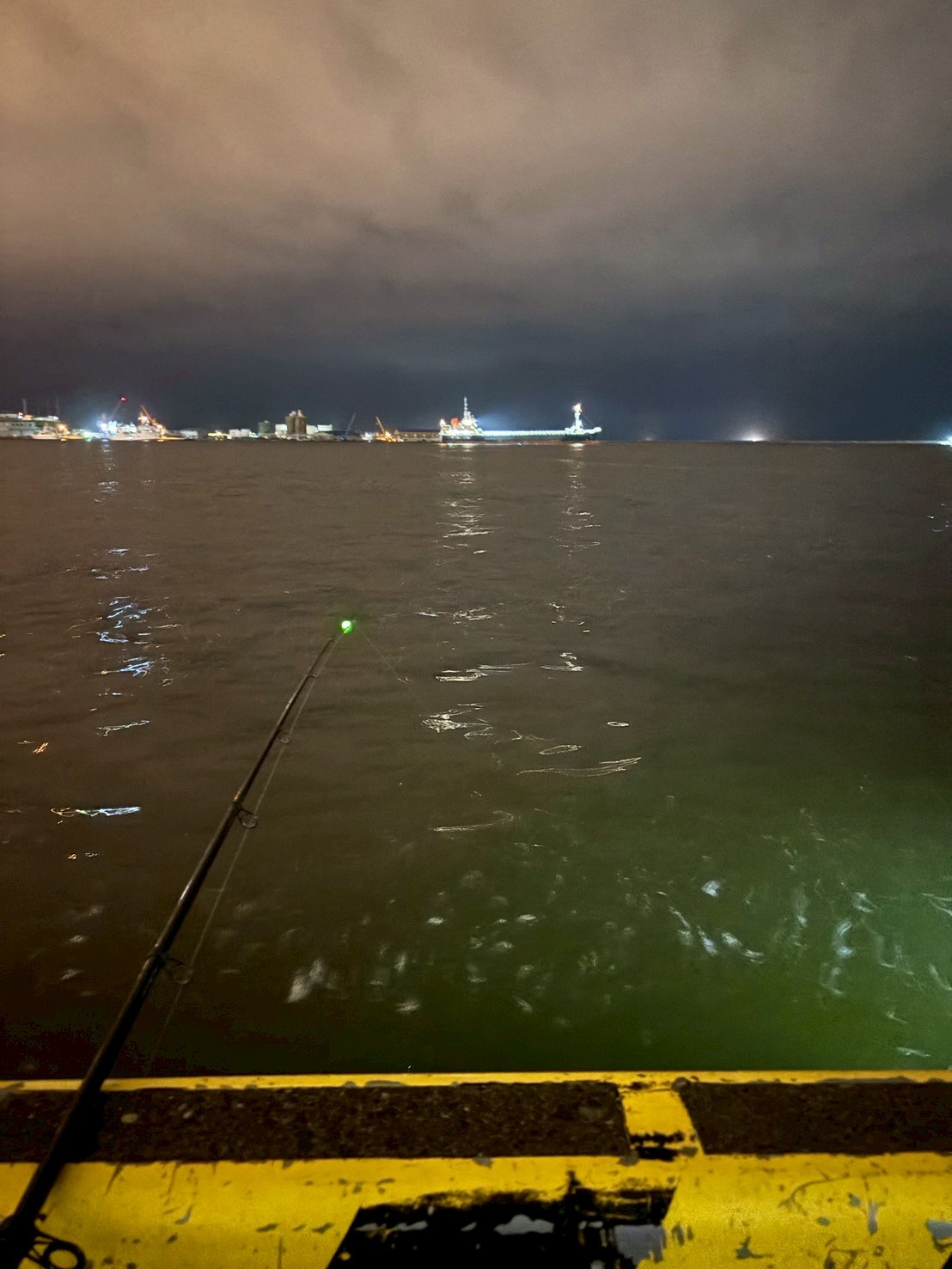 釧路の港で夜釣り。