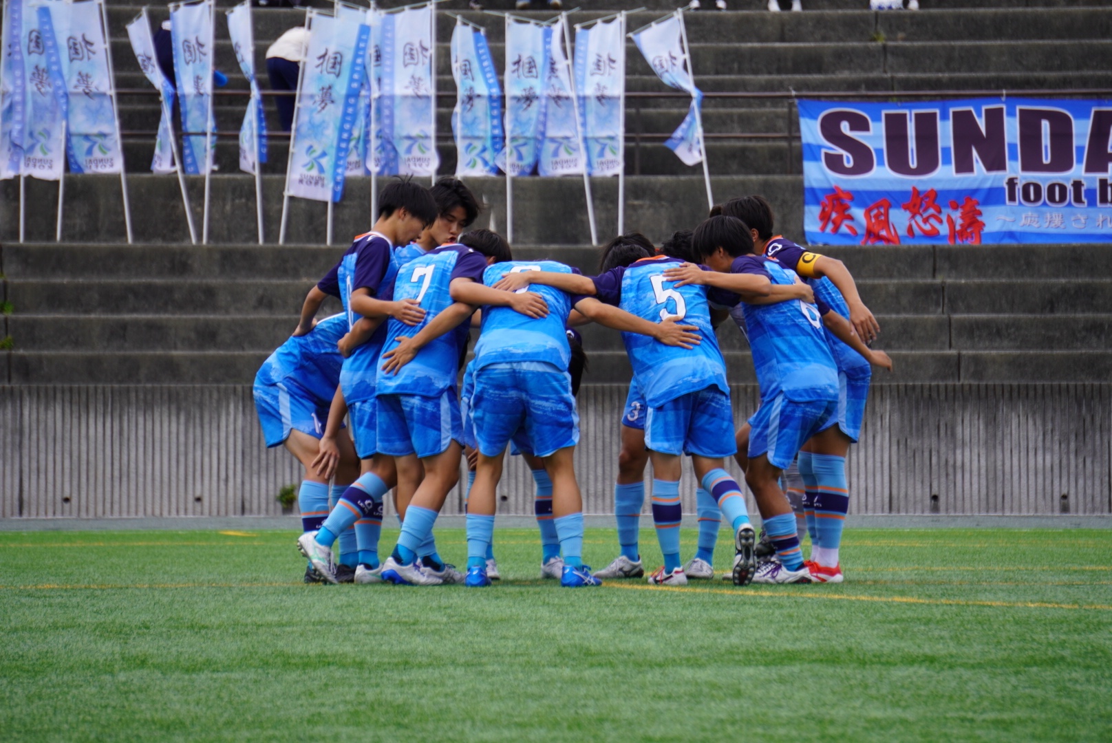 人工芝の恵まれた環境でサッカーができることに感謝を忘れず、選手権小瀬スタジアムで全校生徒・OB・保護者・学校関係者、チーム駿台甲府に恩返しができるように日々鍛錬しています。各学年の人数を20名程度の部員に限定して全ての選手に情熱を注ぎます。自主自律のボトムアップ理論に、規律を重んじるトップダウンを重ねて、選手自らが主体的にチームに関わる体制を作り、自ら考える能力と環境に適応していく能力を育みます。正規サイズのグラウンドは持っていませんが、それをアドバンテージと捉え確固たるスタイルを築き上げます。選手スタッフ一同 、強化指定部としてのプライドを胸に刻み、覚悟を持って、誇り高く戦っていきます。