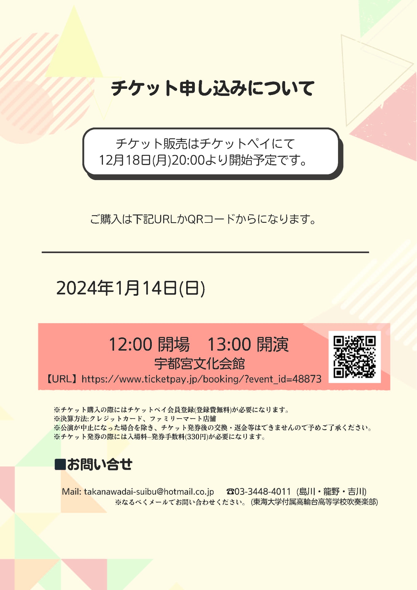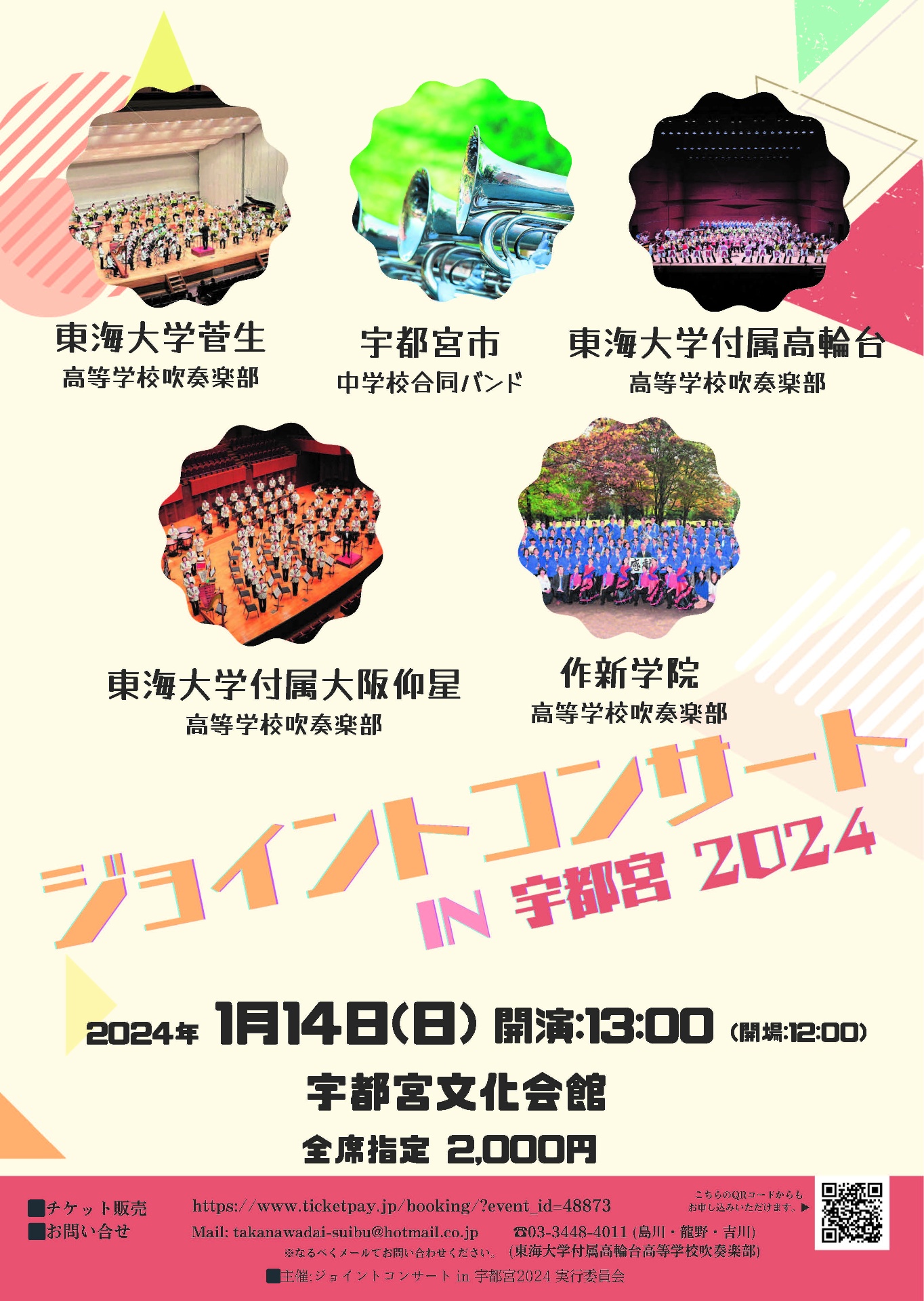 出演校は中学校合同バンド(宇都宮市立河内中、宇都宮市立陽南中、宇都宮市立陽東中、宇都宮市立宮の原中)、作新学院高等学校吹奏楽部、東海大学付属大阪仰星高等学校吹奏楽部、東海大学菅生高等学校吹奏楽部、東海大学付属高輪台高等学校吹奏楽部です!