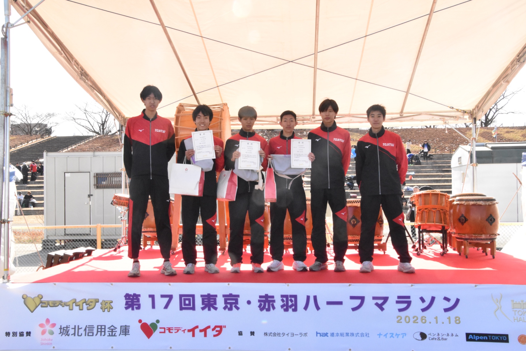 令和8年1月18日赤羽ハーフマラソンに出場しました。10km高校男子では優勝、3位、6位入賞で団体優勝。3km高校男子では3位入賞でおえました。