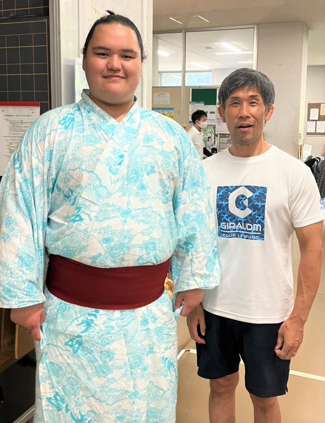 本校柔道部出身で二所ノ関部屋に入門した佐藤総司(総勢山)が挨拶のため来校してくれました。足首の怪我のため、入院、手術をしたのち、見事今場所序の口で勝ち越しました!来場所は序二段に復帰するようですが、足のボルトを抜く手術を受けるため、また序の口に戻ってしまう可能性があるようです。それでも立派になった姿を見ることができて本当に嬉しかったです!多くの人に応援される力士を目指してほしいと思います。