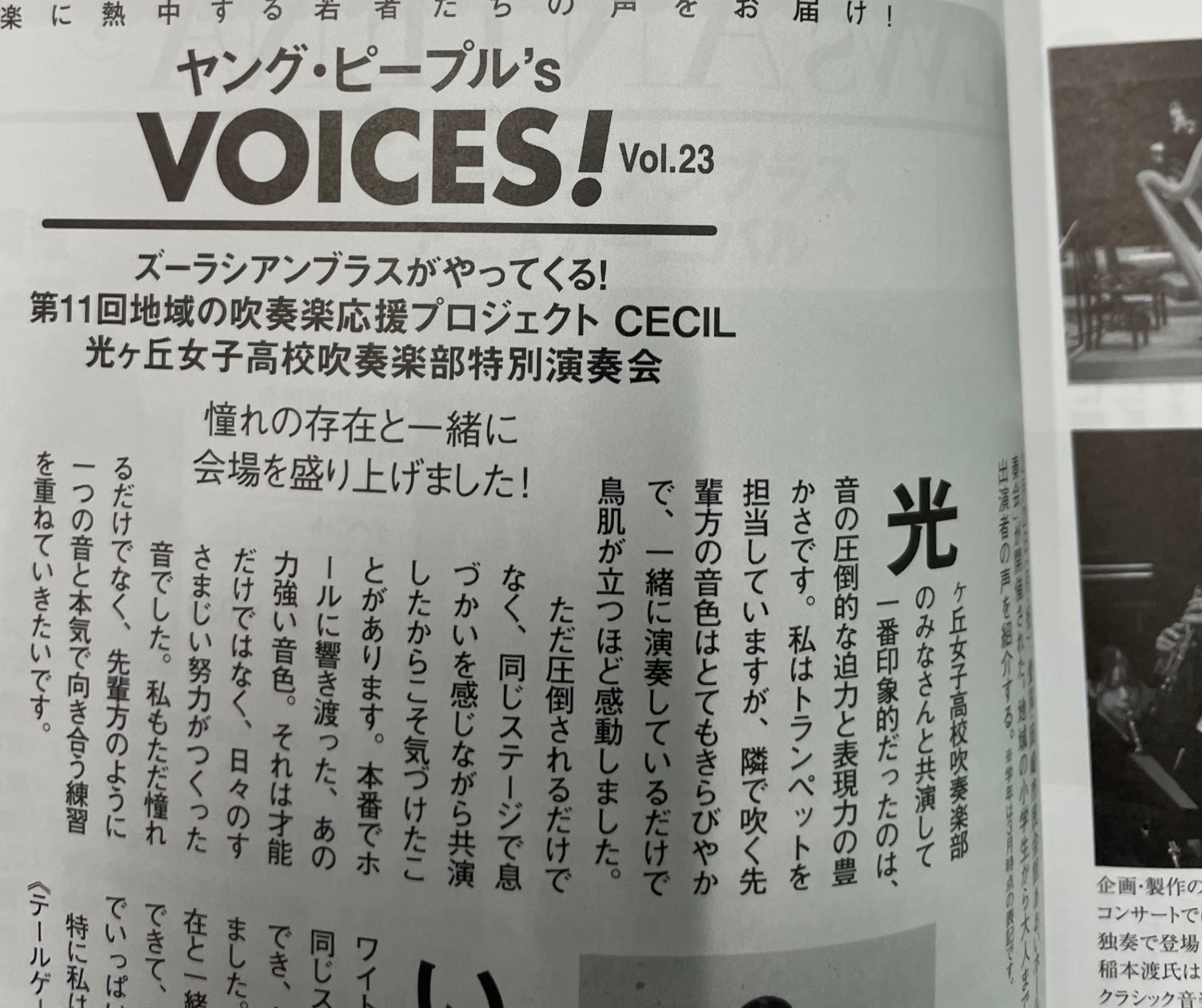 バンドジャーナルにCECILとズーラシアンの演奏会が紹介されました。