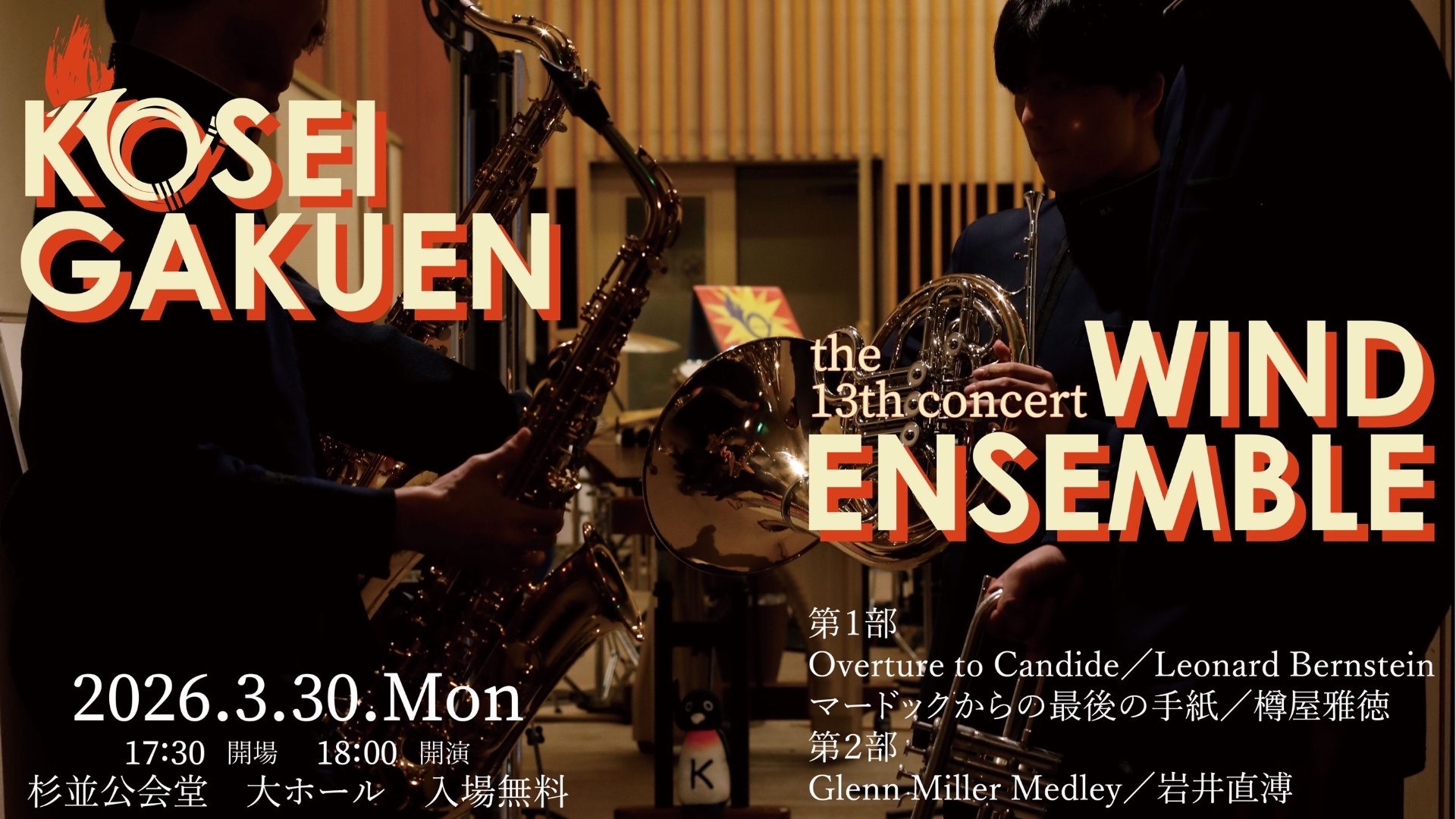 本吹奏楽部は佼成学園男子中学校・高等学校に所属し、1982年の創部以来、現在に至るまで、日々活動の域を広げてきました。